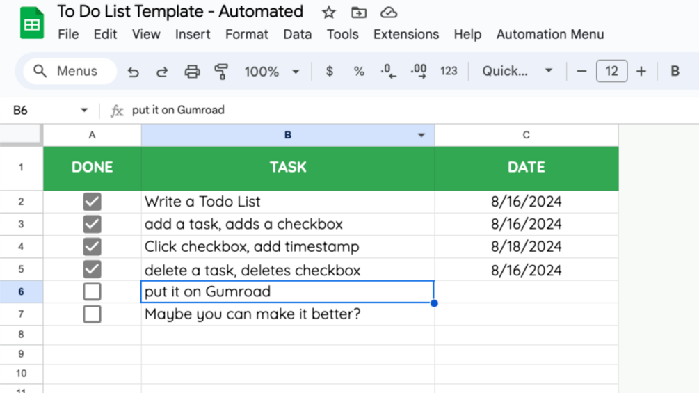 Take my template of an automated Checklist, task list, to do list, whatever you want to call it. Just take it.
